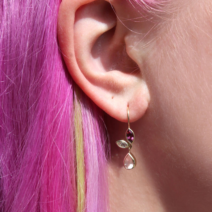 garnet, morganite and rose quartz drop earrings