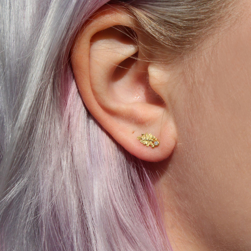 gold and diamond oak leaf stud earrings