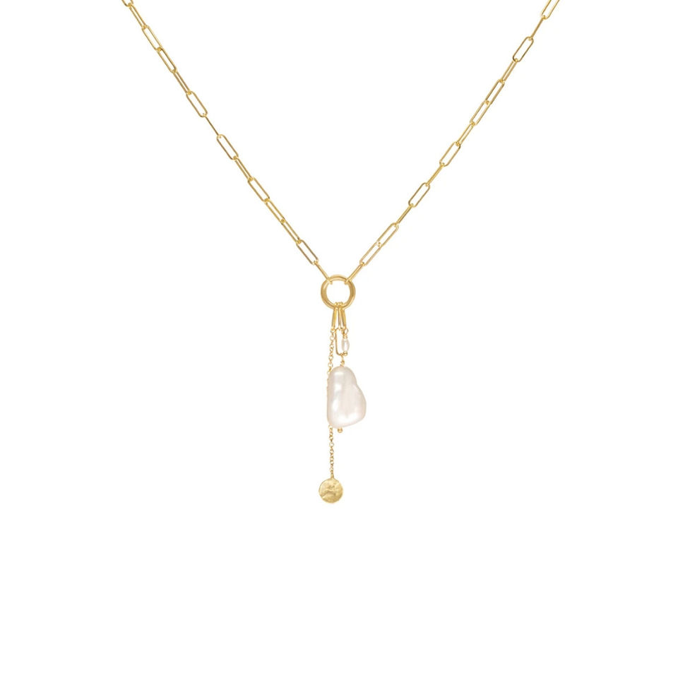 Elegant with edge, we love the contrast of the crisp paperclip chain with the soft organic edges of the Keshi pearl. Each pearl is as unique as you are, and will vary slightly in size and shape.