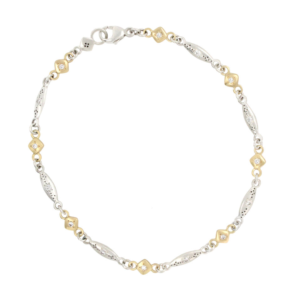 mixed metal and diamond chain bracelet