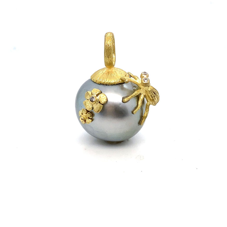 silver tahitian pearl bug and flowers pendant