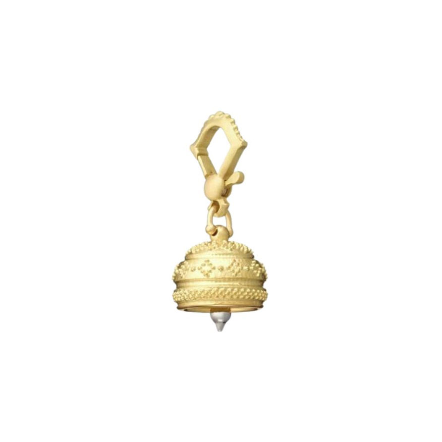 Peace and tranquility are brought to you with the tiny ring of this meditation bell. Impeccable craftsmanship is doubled with a striking granulated design. This piece is sold as a pendant only and does not include a chain.
